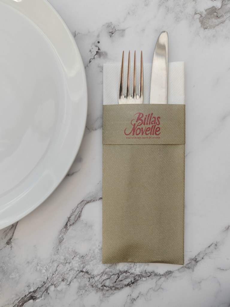 Geef uw restaurant of horecagelegenheid een professionele uitstraling met bedrukte bestekpochettes, servetten en verfrissingsdoekjes. Zo onderscheidt u zich van de standaard groothandelproducten — de mogelijkheden in uitvoering en kwaliteit zijn eindeloos.